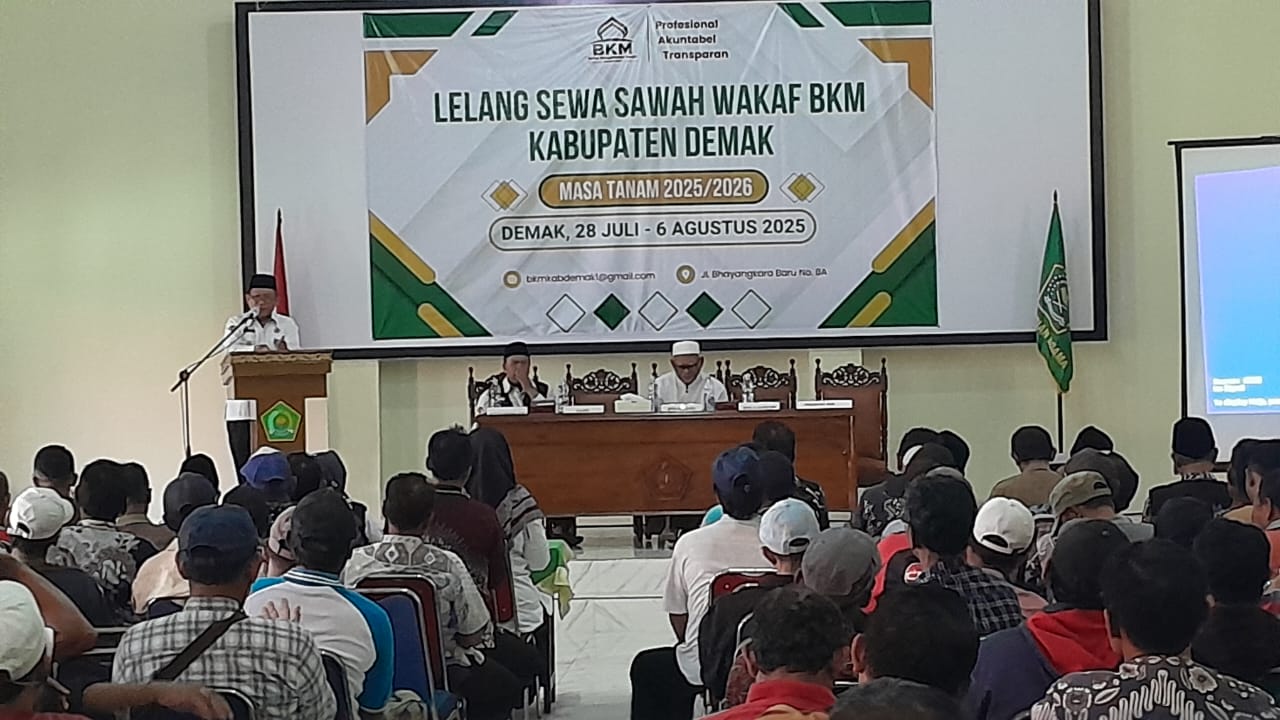 Demak, Matapadma– Badan Kesejahteraan Masjid (BKM) Kabupaten Demak, Jawa Tengah, melaksanakan kegiatan lelang sawah wakaf yang berlangsung terbuka bagi warga Kabupaten Demak, lelang ini melibatkan lahan wakaf seluas 477 bahu atau sekitar 286 hektar yang tersebar di berbagai titik wilayah Kabupaten Demak.