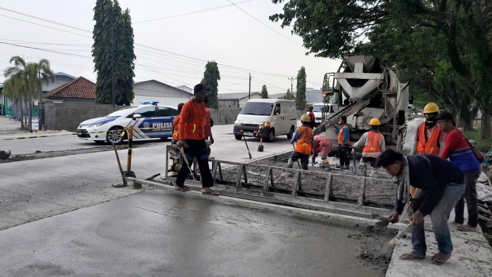 “Saat ini progres sudah 90 persen, tinggal 10 persen lagi. Ada tiga lajur yang sudah bisa dilalui, tinggal satu lajur yang masih dalam tahap penyelesaian,” ujar Iptu Khoirul saat meninjau lokasi pekerjaan betonisasi, Senin (02-03-2026).