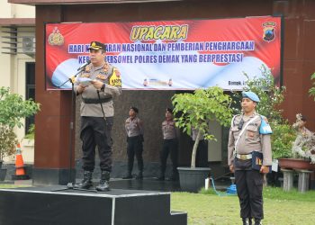 Demak, Matapadma- Kepolisian Resor Demak gelar upacara Hari Kesadaran Nasional yang dilaksanakan tanggal 17 setiap bulannya di lapangan Wicaksana Leghawa ...
