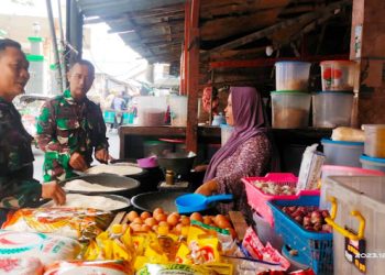 Demak, Matapadma- Personel Babinsa Koramil 12 Mranggen Kodim 0716 Demak, Sertu Abdul Latif fan Sertu Sulistiono turun ke pasar tradisional ...